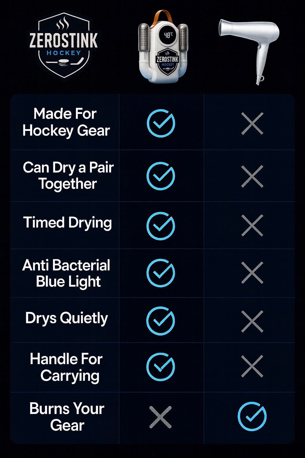 โAs a hockey mom, Iโm so impressed with the quality of Zero Stink Hockey. The dryer feels sturdy, powerful, and clearly built for real hockey families. It dries gear fast, the UV light really helps with odor, and you can tell itโs made to last. It exceeded every expectation.โ